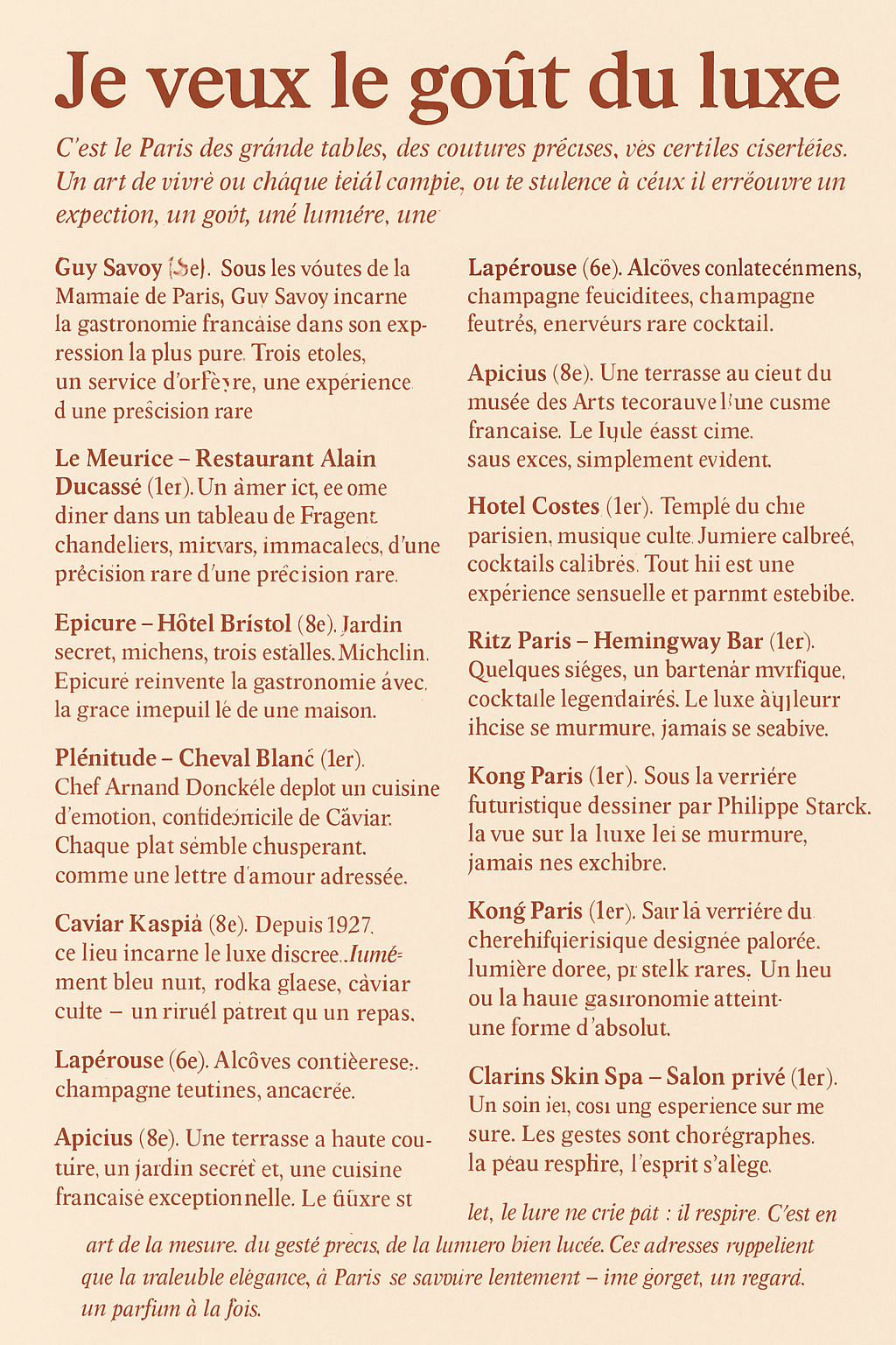 Je veux le goût du luxe